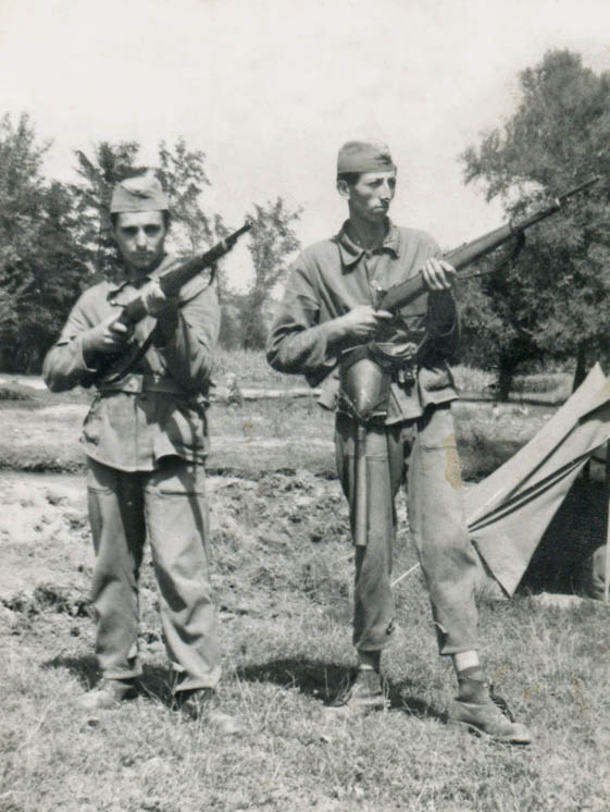 Душан С. Марковић (1941.) и Бранко Р. Милосављевић (1941.) на предвојничкој обуци у Медвеђи (фото 1959.)